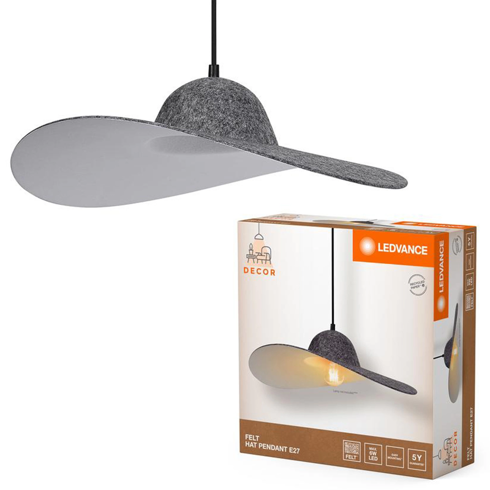 Lampa Wisząca Kapelusz Oprawa Oświetleniowa E27 Dekoracyjna Filc Szara LEDVANCE