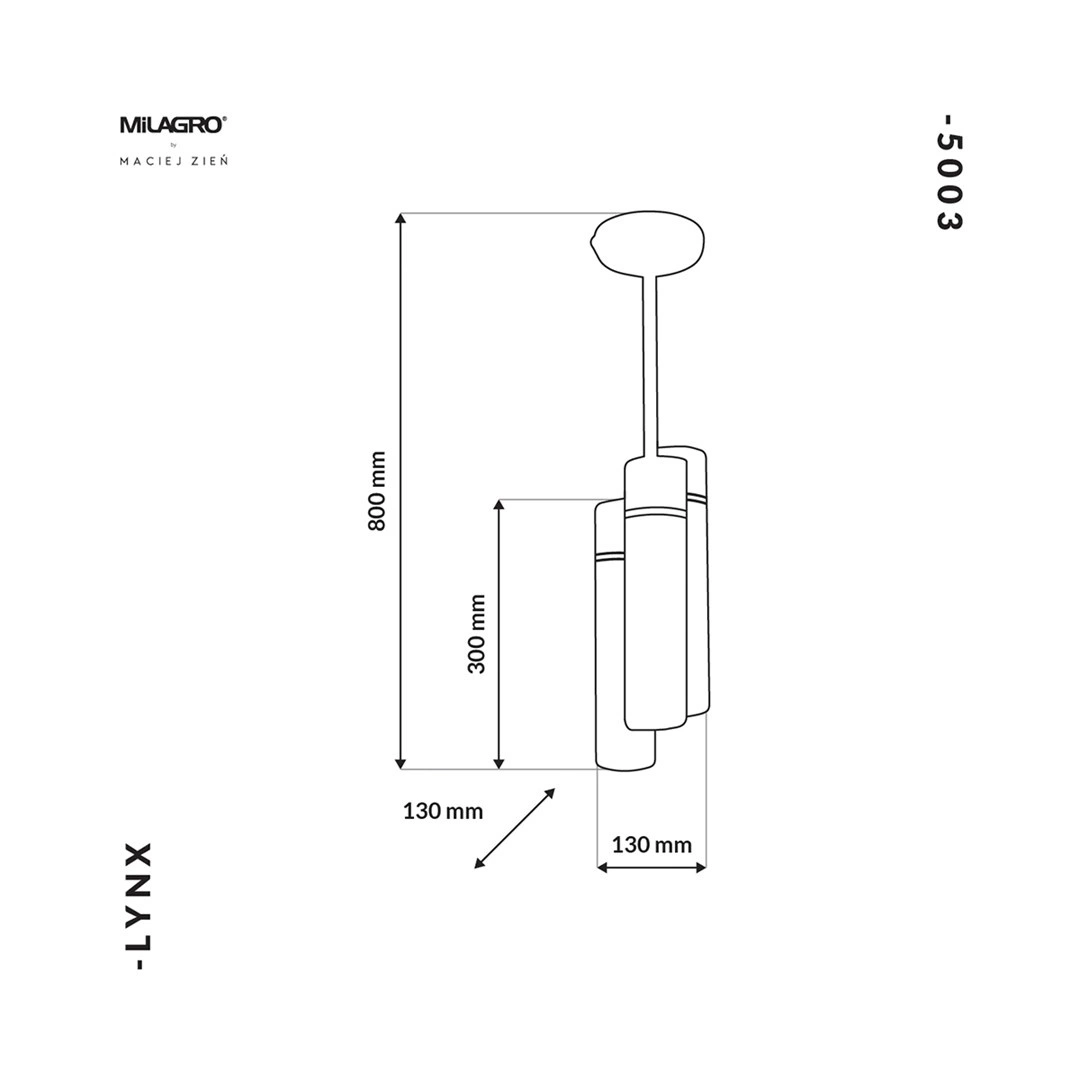 LYNX 5003 marki MiLAGRO to efektowna Lampa zaprojektowana przez znanego polskiego projektanta- Macieja Zienia. Swoim kształtem przypomina tubę, a złoty panel dookoła oprawy nawiązuje do bransoletek i eleganckich zapięć kobiecych akcesoriów. W stylowym detalu można doszukać się także odniesień do bogatych zdobień stosowanych w architekturze. Jej niebanalny, nieco ekstrawagancki kształt dodaje szyku i charakteru lampie, a podłużne tuby z półokrągłym zakończeniem przyciągają wzrok i nie pozostawiają nikogo obojętnym. Lampa LYNX ma sześć punktów świetlnych o gwincie E14, a prawidłowo i bezpiecznie działaj przy napięciu równym 230 V i częstotliwości wynoszącej 50 Hz.
