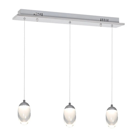 OVO marki MiLAGRO to wisząca Lampa sufitowa niewielkich rozmiarów z 3 punktami światła zainstalowanymi na stałe o mocy 15 W, które odpowiadają 79 W tradycyjnej Żarówki. Produkt wykonano z wysokiej jakości materiałów: metalu i akrylu. Źródłem światła są 3 moduły LED o mocy 5 W, który zapewnia niskie zużycie energii. Długość lampy to jedynie 50 cm, z kolei szerokość to zaledwie 10 cm. Jej dużą zaletą jest możliwość regulacji wysokości do 100 cm, dzięki czemu lampę można bez problemu dopasować do pomieszczeń zarówno wysokich, jak i niskich. Może być stosowana jako dekoracyjne oświetlenie punktowe, jak również zespół źródeł światła nad stołem lub barem. Ovo 428 będzie również doskonałym dopełnieniem salonów, sypialni oraz jadalni. W zestawie znajdują się niezbędne elementy do jej montażu.