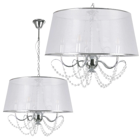 Lampa wisząca ABBAZIA z pięcioma punktami świetlnymi ma ekskluzywny charakter. Stworzona z wysokiej jakości chromowanej stali, szkła i tkaniny, prezentuje się niezwykle stylowo. Wspaniale wygląda zarówno we wnętrzach nowoczesnych, jak i klasycznych, podkreślając ich luksusowy wystrój. Jej forma nawiązująca do klasycznych żyrandoli doda reprezentacyjnego charakteru każdemu salonowi, jadalni czy sali restauracyjnej. Należy przy tym podkreślić, że lampa ABBAZIA jest nie tylko efektowna, ale także stanowi wydajne i zarazem energooszczędne źródło światła.