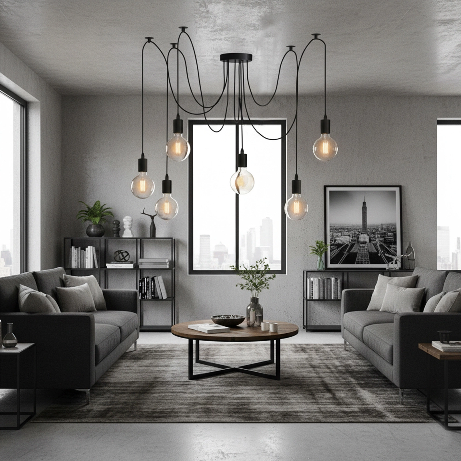 Matowa czarna konstrukcja wprowadza do przestrzeni elegancki akcent, który naturalnie współgra zarówno z prostymi, minimalistycznymi aranżacjami, jak i wnętrzami loftowymi. Sześć punktów światła zapewnia równomierne doświetlenie całego pomieszczenia, dzięki czemu zyskujesz komfort, lepszą widoczność i przyjemny nastrój. Subtelny design sprawia, że oprawa nie dominuje nad aranżacją, lecz harmonijnie ją uzupełnia. Dzięki temu lampa staje się uniwersalnym dodatkiem, który łatwo dopasować do różnych stylów i zmian wystroju.
