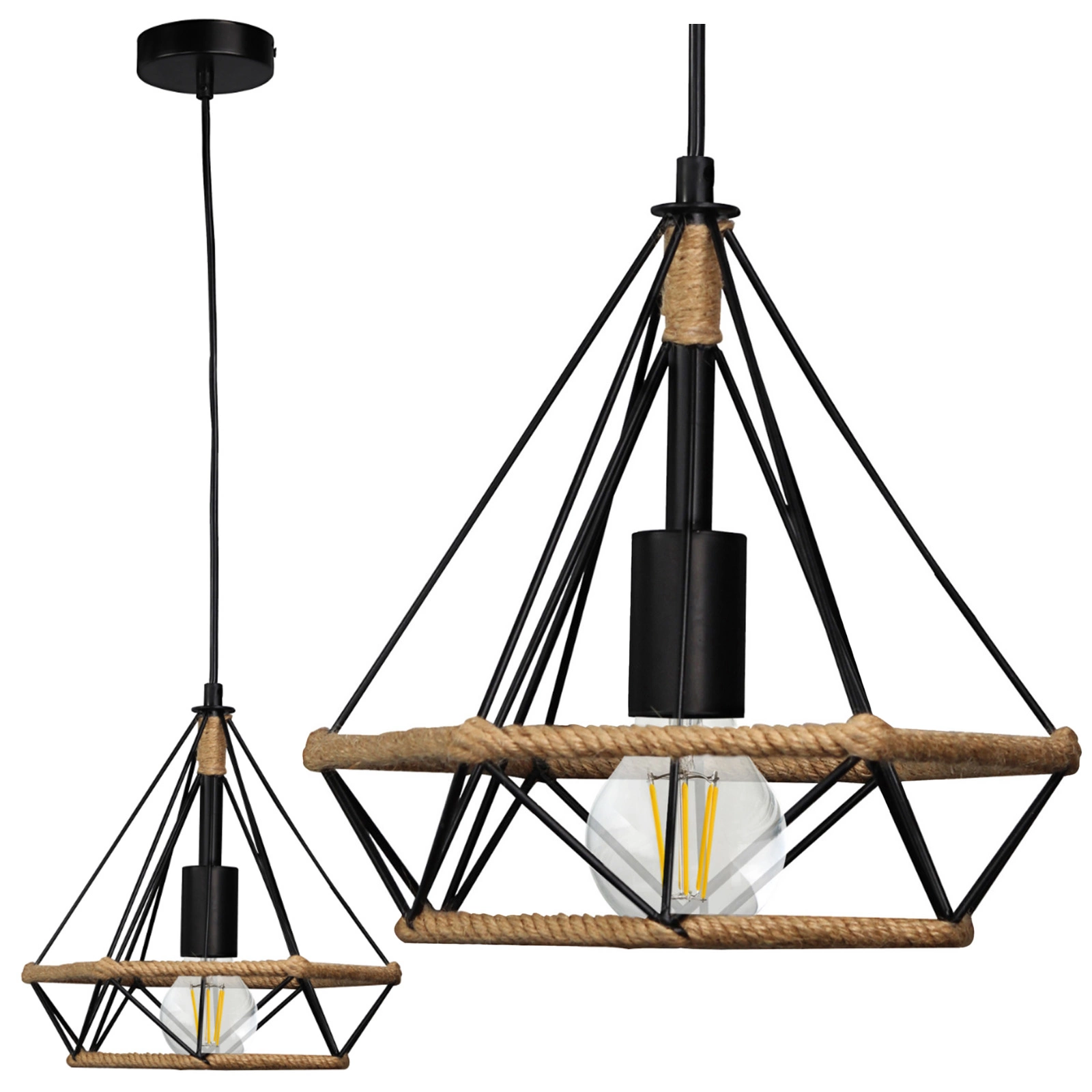 Lampa wisząca sufitowa BROXTON Rope IL MIO czarna w stylu loft stal + sznur 1x E27 GOLDLUX (Polux)
