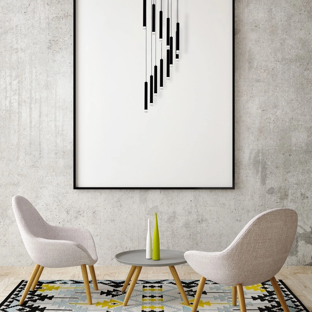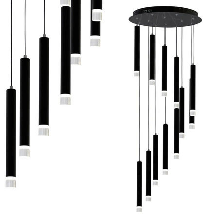 Lampa sufitowa o niespotykanej formie i wyjątkowym kształcie. Posiada kilkanaście zintegrowanych źródeł światła, które można ustawić na dowolnej wysokości, maksymalnie do 200 cm. Takie rozwiązanie pozwala na dopasowanie jej do pomieszczeń zarówno wysokich, jak i niskich. Lampę wyróżniają też niewielkie rozmiary, m.in. szerokość 45 cm. Pojedynczy “sopel” ma średnicę 2,5 cm. Neutralna barwa światła najbardziej zbliżona do światła dziennego i silny strumień świetlny 840 lm zapewniają przyjemne użytkowanie. Całość wykonano z metalu oraz akrylu.