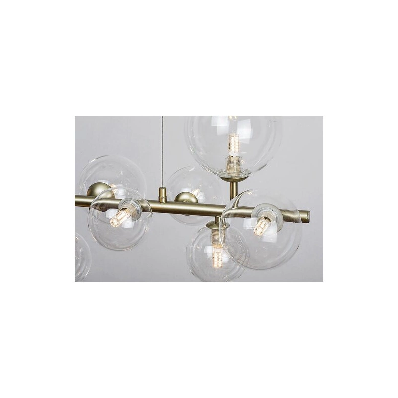 Prezentujemy nowoczesną Lampę Wiszącą Sufitową o stylowym, matowym wykończeniu w kolorze złotym, idealną do wnętrz takich jak salon, jadalnia czy sypialnia. Wykonana z wysokiej jakości metalu oraz wyposażona w przesłonę ze szkła, która zapewnia wyjątkowy efekt świetlny dzięki swojej przezroczystości. Ta lampa współpracuje z wymiennym źródłem światła o trzonku G9, co pozwala na łatwą personalizację oświetlenia według własnych preferencji.