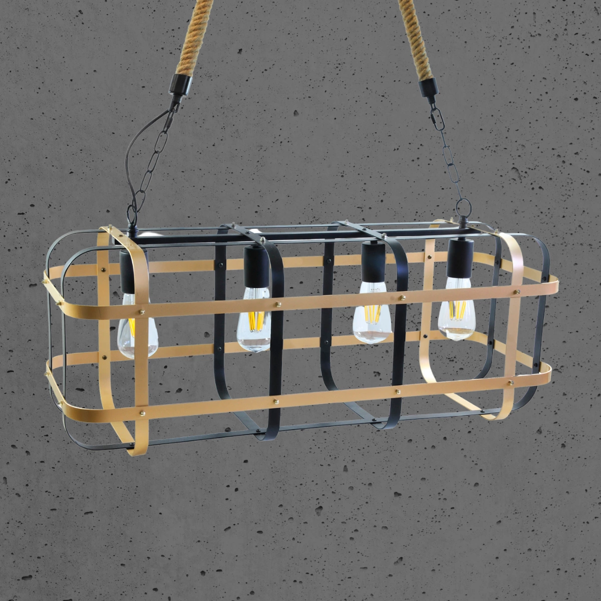 Lampa Wisząca SUFITOWA KLATKA 4xE27 Czarno-złota GOLDLUX (Polux)