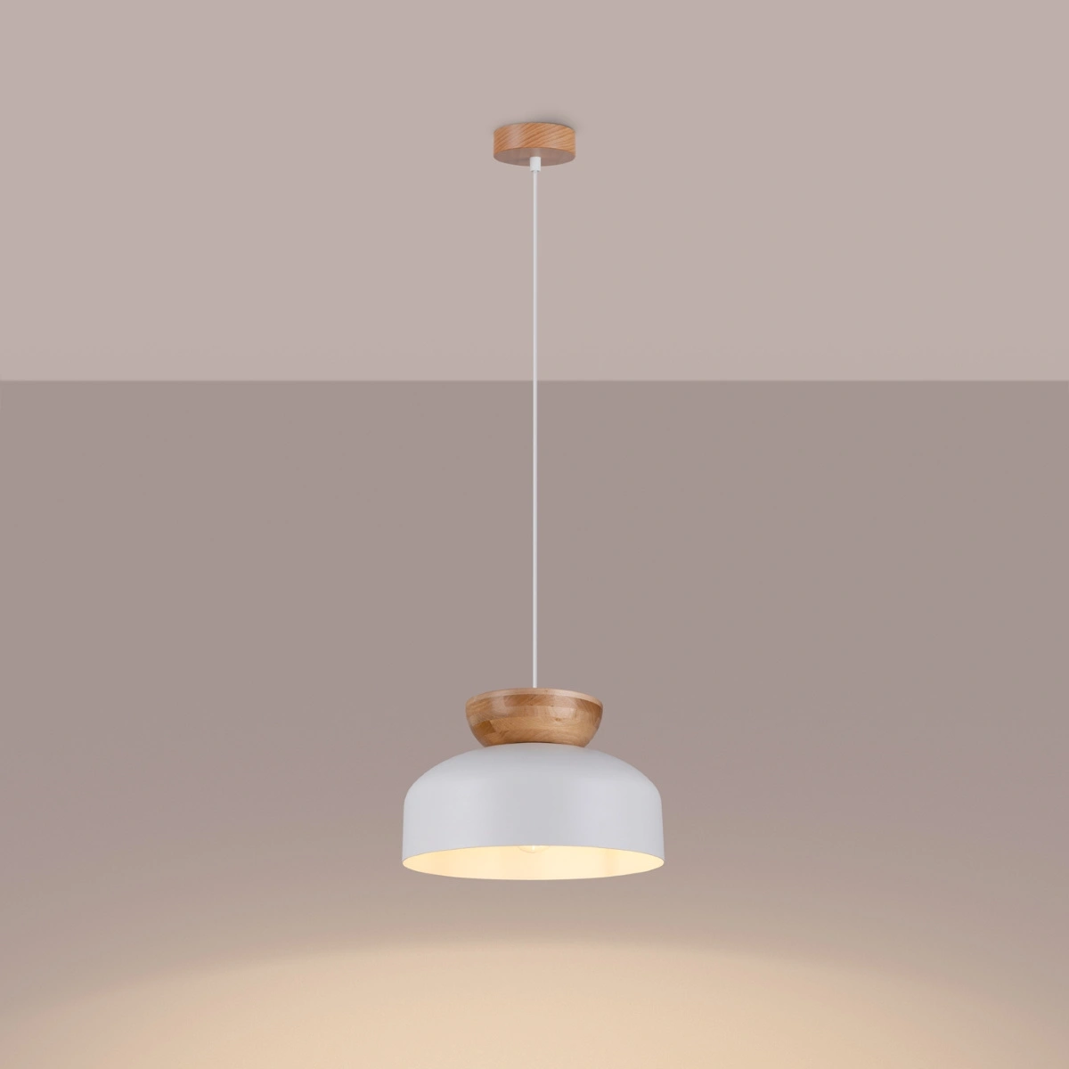 Lampa Sufitowa Wisząca Zwis E27 Okrągła Naturalne Drewno Skandynawska Marion Sollux