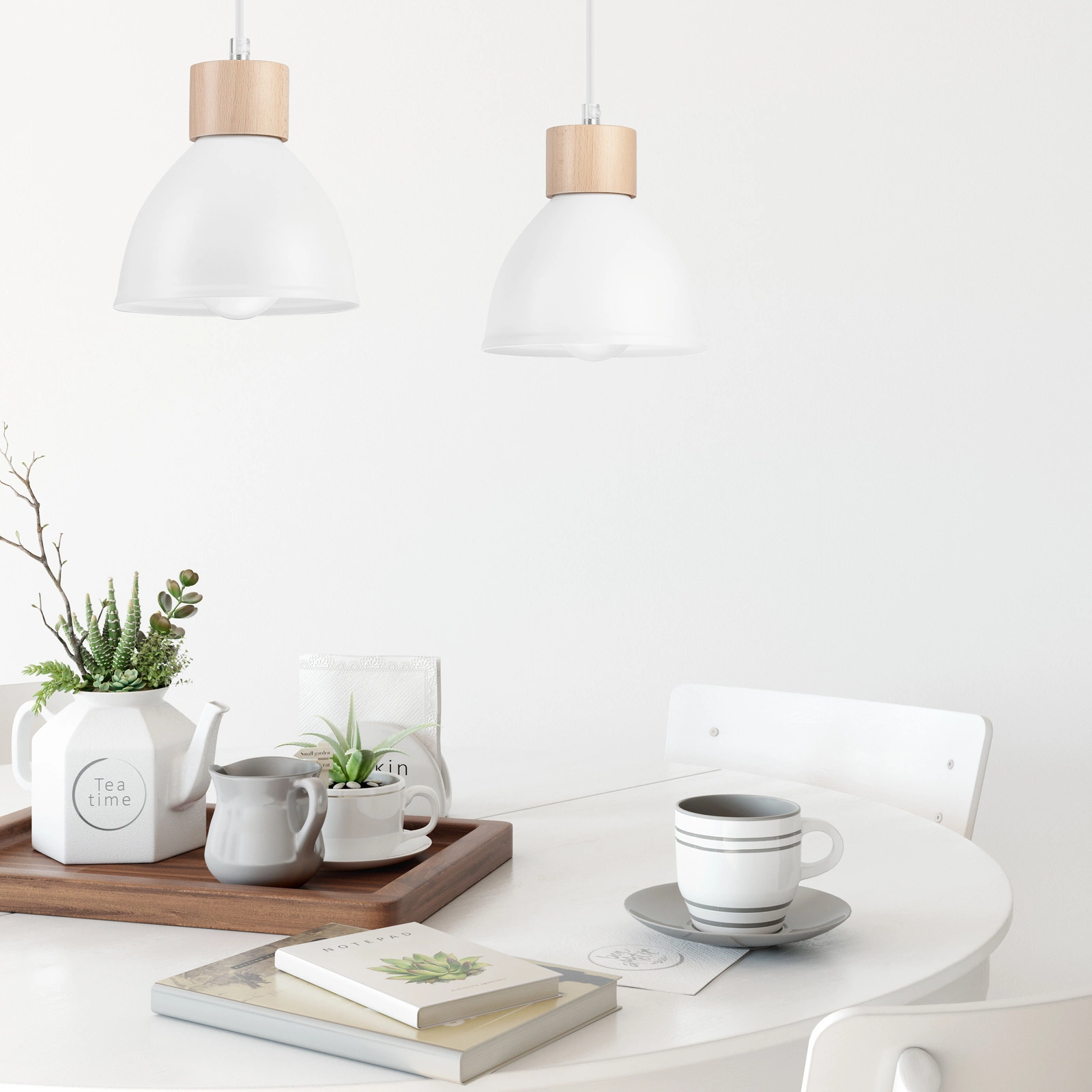Lampa Wisząca Sufitowa NICO 2xE27 Biała Drewniana LM-2.143 Lamkur