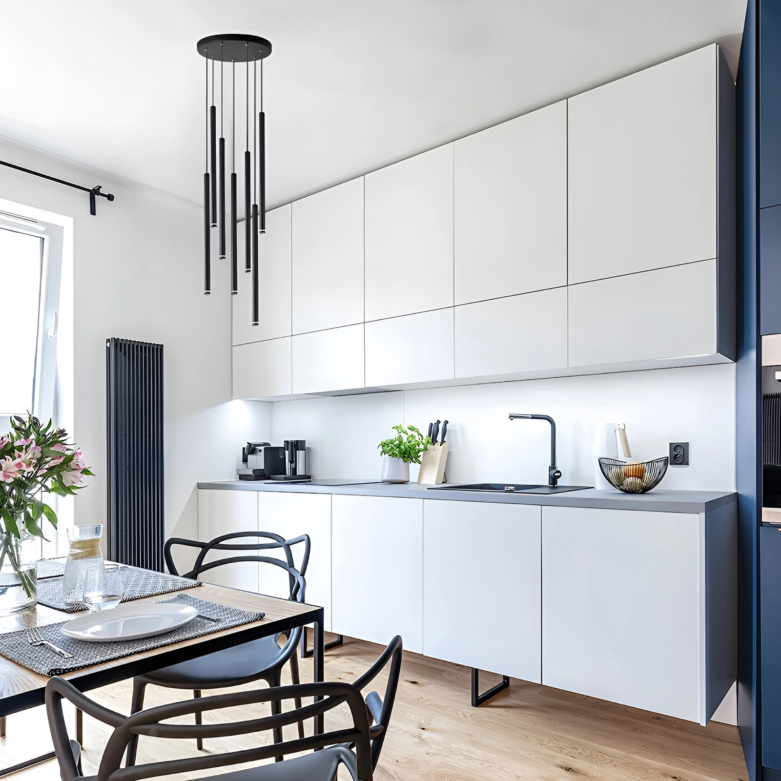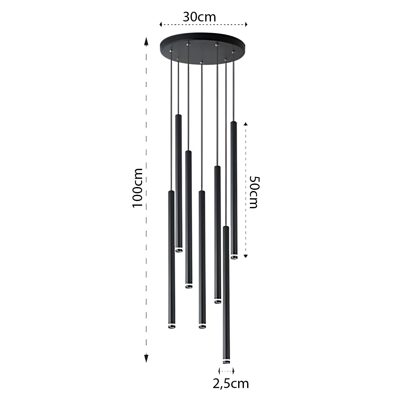 Lampa wisząca z serii Piero to nowoczesne oświetlenie przymocowane do okrągłej podstawy w eleganckim czarnym kolorze. Idealnie pasuje zarówno do nowoczesnych wnętrz, jak i klasycznych aranżacji, dodając im unikalnego charakteru. Lampa wisząca świetnie sprawdzi się w salonie, sypialni, nad stołem w jadalni, a także w przestrzeniach komercyjnych. Lampa wyposażona jest w siedem źródeł światła z trzonkiem G9 o maksymalnej mocy 35W. Rodzaj emitowanego światła zależy od wybranej przez użytkownika żarówki, co pozwala na dostosowanie oświetlenia do indywidualnych potrzeb - od barwy ciepłej, przez neutralną, aż po zimną, w zależności od atmosfery, jaką chcemy uzyskać.