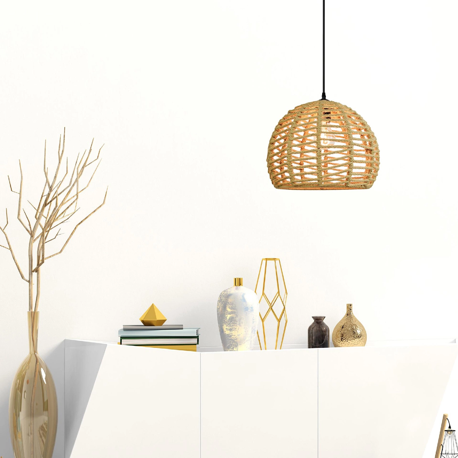 Lampa wisząca sufitowa półkula OTIS IL MIO w stylu boho stal + sznur 1x E27 GOLDLUX (Polux)