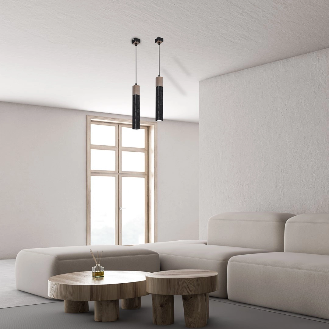 Lampa Wisząca Sufitowa SOLO SAWN Czarna Patyna Drewniana 1x mini GU10 Milagro