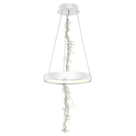 Spark 273 do stylowa lampa wykończona w białym, matowym kolorze. Stanowi połączenie prostego, współczesnego stylu, który zawdzięczamy białej, okrągłej oprawce wraz z łańcuchem wykończonym diodami ledowymi, będącym subtelnym elementem dekoracyjnym. Stworzona w ten sposób iluminacja nadaje poczucie większej przestrzeni w każdym pomieszczeniu.