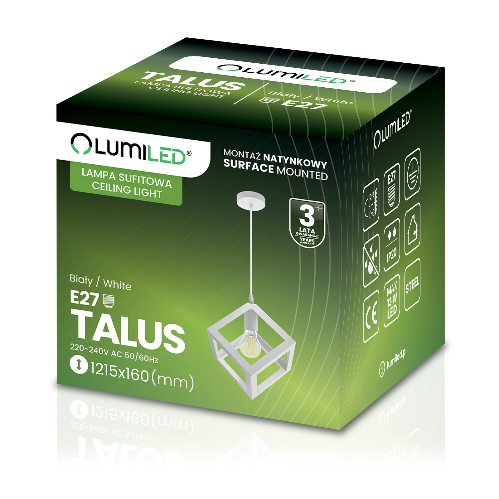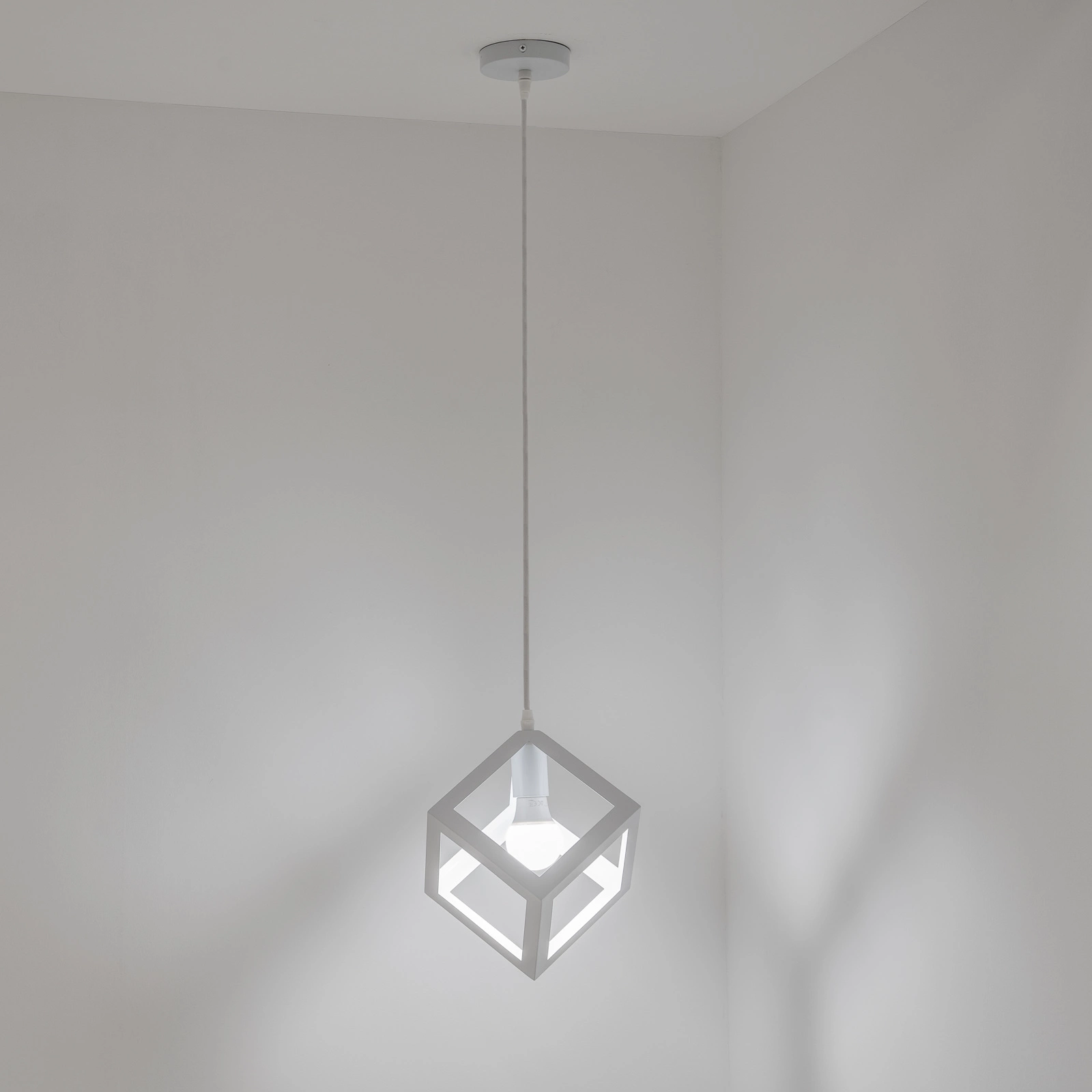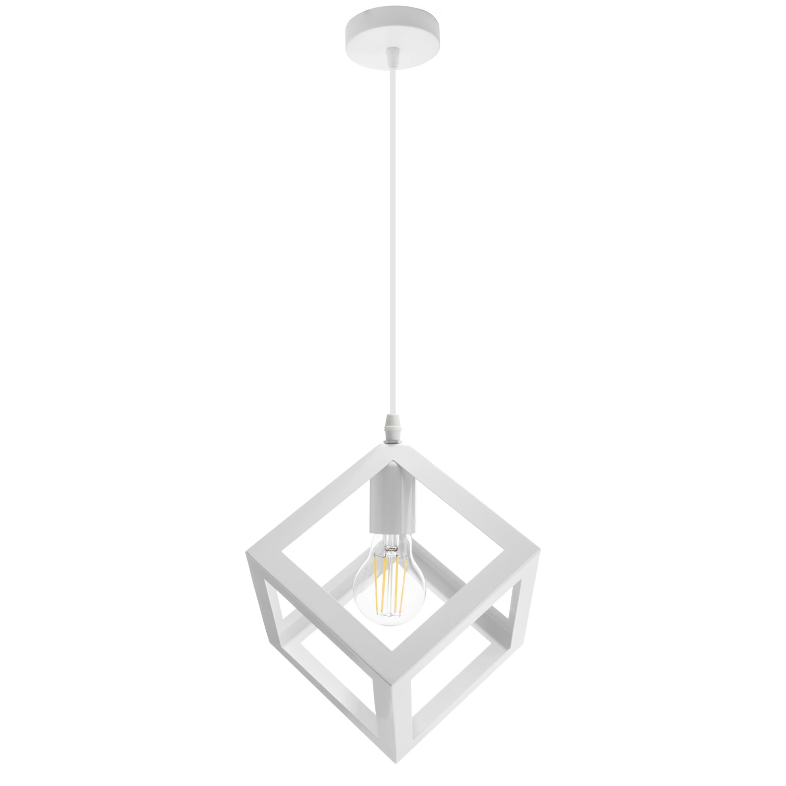 Lampa Wisząca Sufitowa Geometryczna Kwadrat Zwis LED E27 TALUS Biała LUMILED