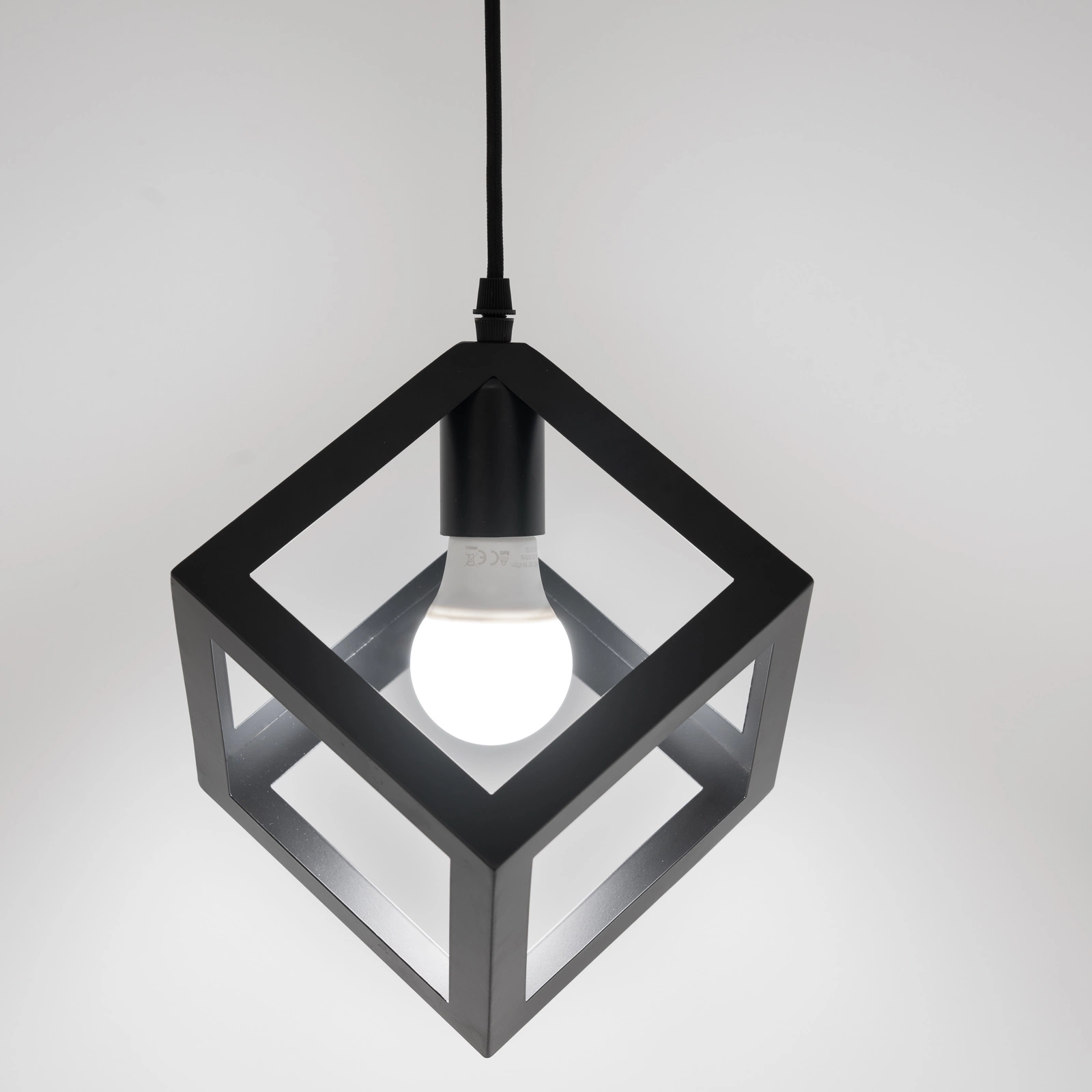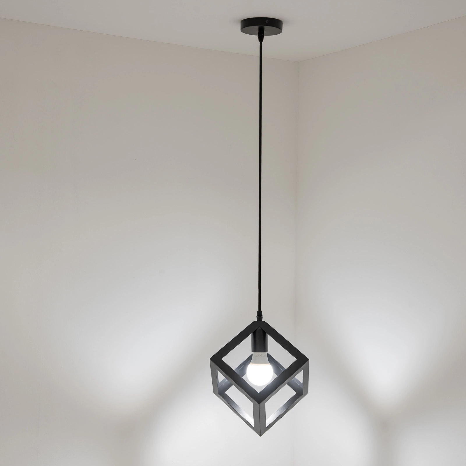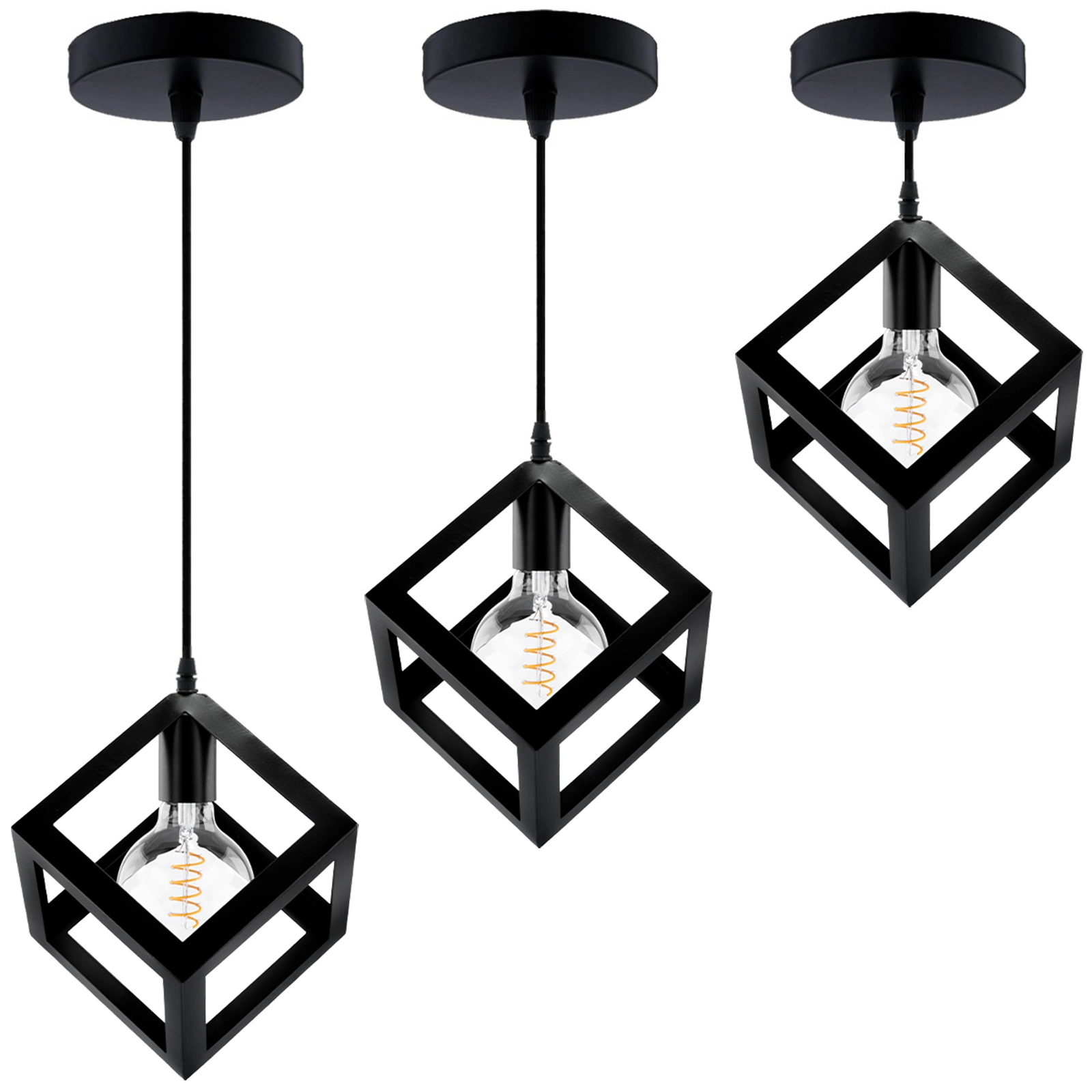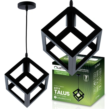 Lampa Wisząca Sufitowa Geometryczna Kwadrat Zwis LED E27 TALUS Czarna LUMILED