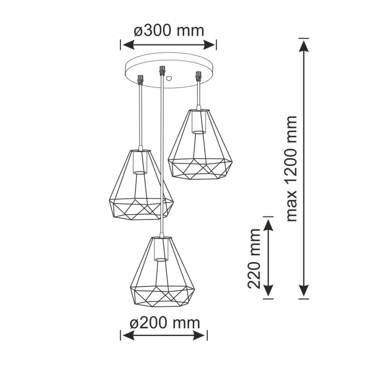 Lampa wisząca sufitowa VIGO P IL MIO geometryczna ZWIS druciana w stylu loft 3x E27 GOLDLUX (Polux)