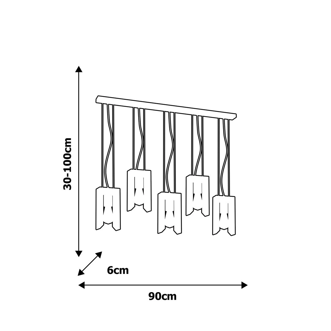 Lampy z kolekcji VINCENZO wykonano z połączenia dwóch materiałów. Podstawy lamp, zwisy czy ramy zrobiono z czarnego metalu, a części pełniące funkcję żyrandola z jasnego drewna. Warto wspomnieć, że to one dodają niezwykłego charakteru całości. Mają bowiem formę otwartego prostokąta, przy czym dwa boki zostały ścięte, co nadaje całości asymetrycznego charakteru. Taka konstrukcja doskonale eksponuje dekoracyjną żarówkę.