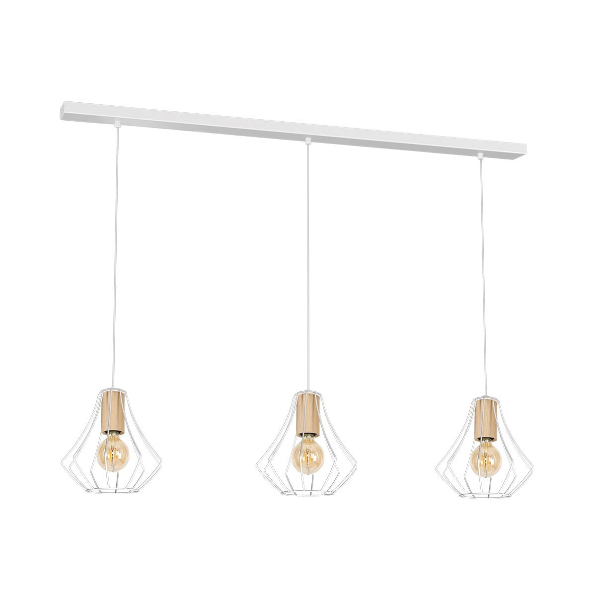 Lampa wisząca sufitowa WILL 3x E27 LOFT Biała Metal + drewno Milagro