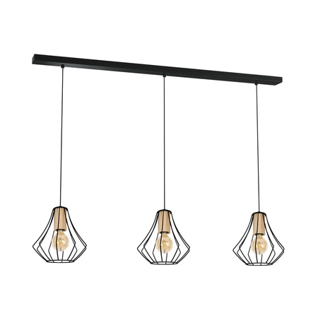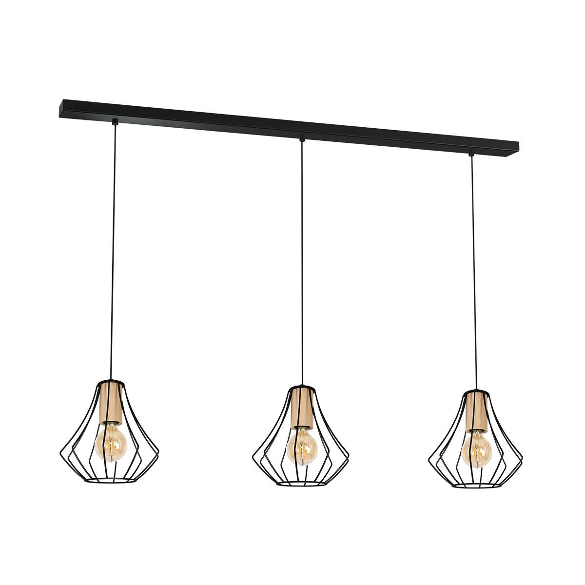 Lampa wisząca sufitowa WILL 3x E27 LOFT Czarna Metal + drewno Milagro