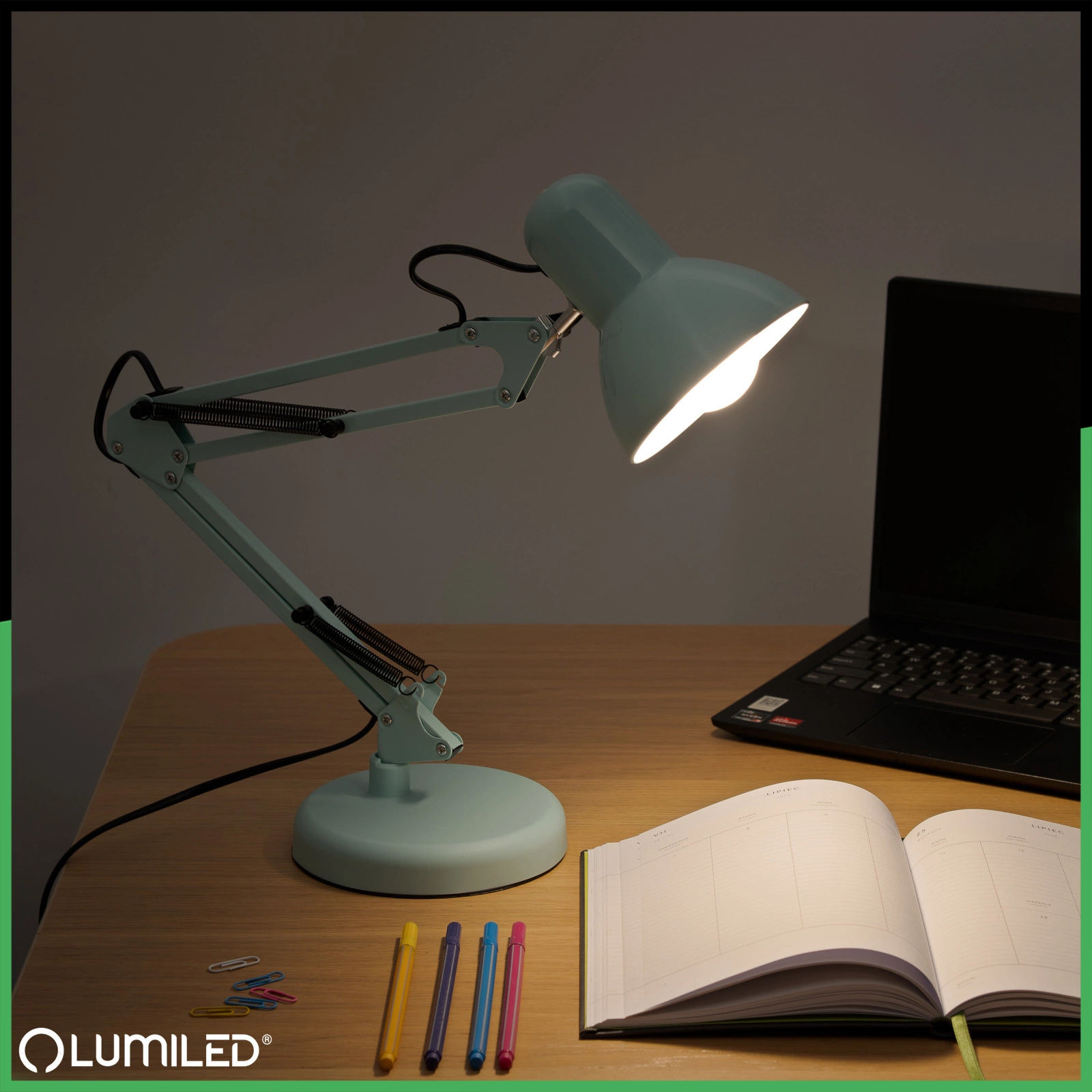 Lampa biurkowa TOBI marki Lumiled to praktyczne i stylowe rozwiązanie dla każdego, kto potrzebuje funkcjonalnego oświetlenia przy pracy, nauce lub czytaniu. Dzięki gniazdu E27 dopasujesz żarówkę LED do swoich preferencji – od ciepłego, nastrojowego światła po jasne, sprzyjające koncentracji. Solidna stalowa konstrukcja łączy trwałość z elegancją, a dodatkowy uchwyt stołowy w zestawie pozwala oszczędzić miejsce i wygodnie zamocować lampę. To uniwersalny wybór zarówno do biura, jak i pokoju młodzieżowego.