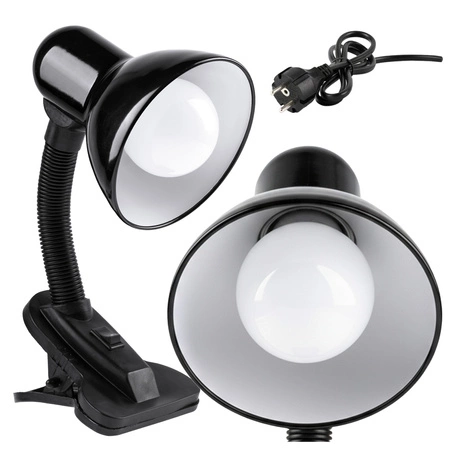 Lampka Biurkowa Lampa Stołowa Szkolna E27 Klips Czarna Lumek Kobi