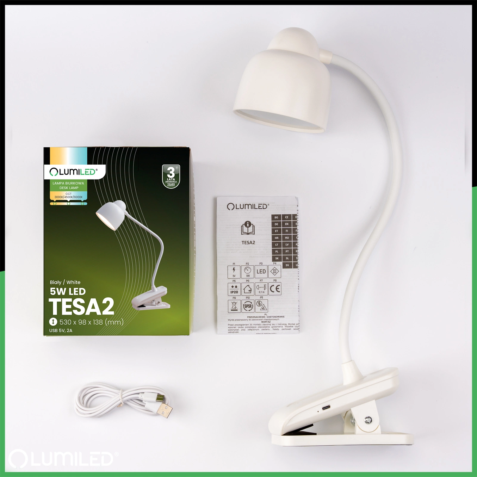 Lampa biurkowa TESA2 marki Lumiled to połączenie nowoczesnego designu i funkcjonalności, które ułatwiają codzienną pracę i naukę. Dzięki regulacji barwy światła w trzech trybach, lampka dopasowuje się do każdej sytuacji – od ciepłego światła sprzyjającego relaksowi, po chłodne, które wspiera koncentrację. Wbudowany akumulator i port USB zwiększają mobilność i wygodę, pozwalając korzystać z urządzenia także tam, gdzie dostęp do gniazdka jest ograniczony. Solidne materiały i intuicyjne, dotykowe sterowanie sprawiają, że jest to rozwiązanie praktyczne i stylowe zarazem.