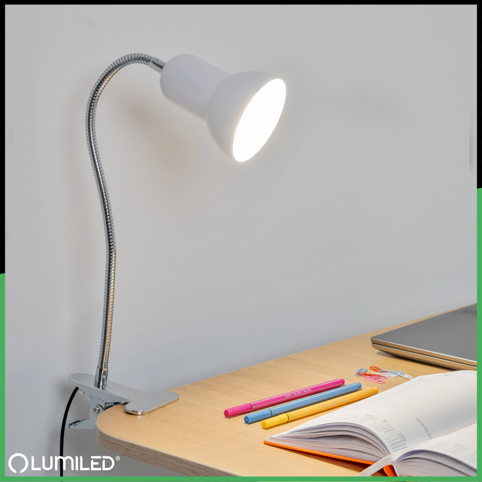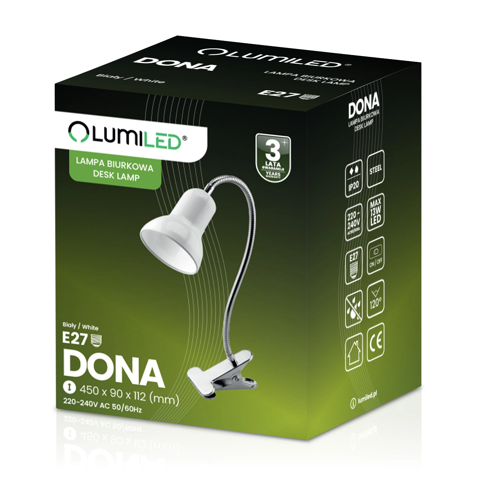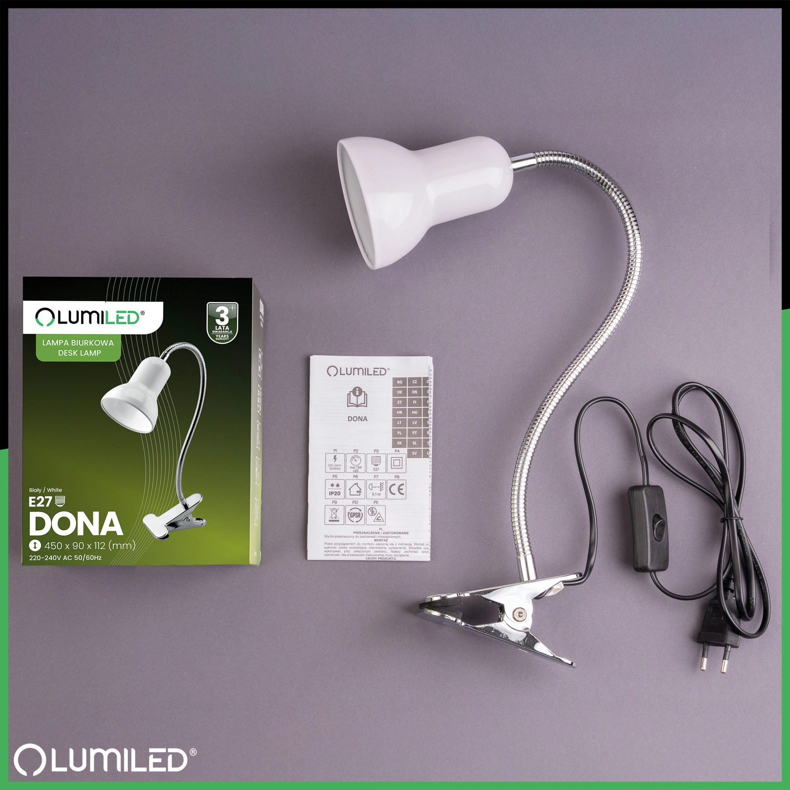 Lampka Biurkowa Stołowa Regulowana DONA Szkolna Nocna E27 Klips Biała LUMILED