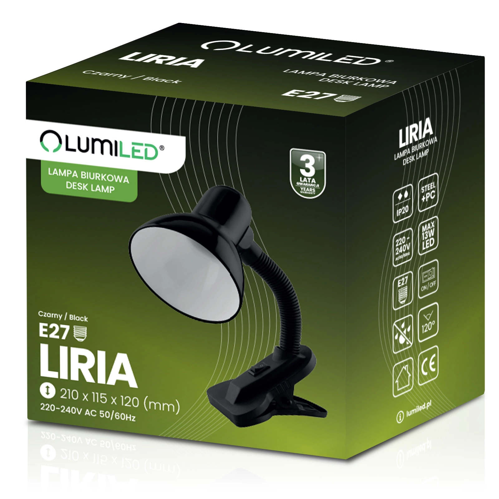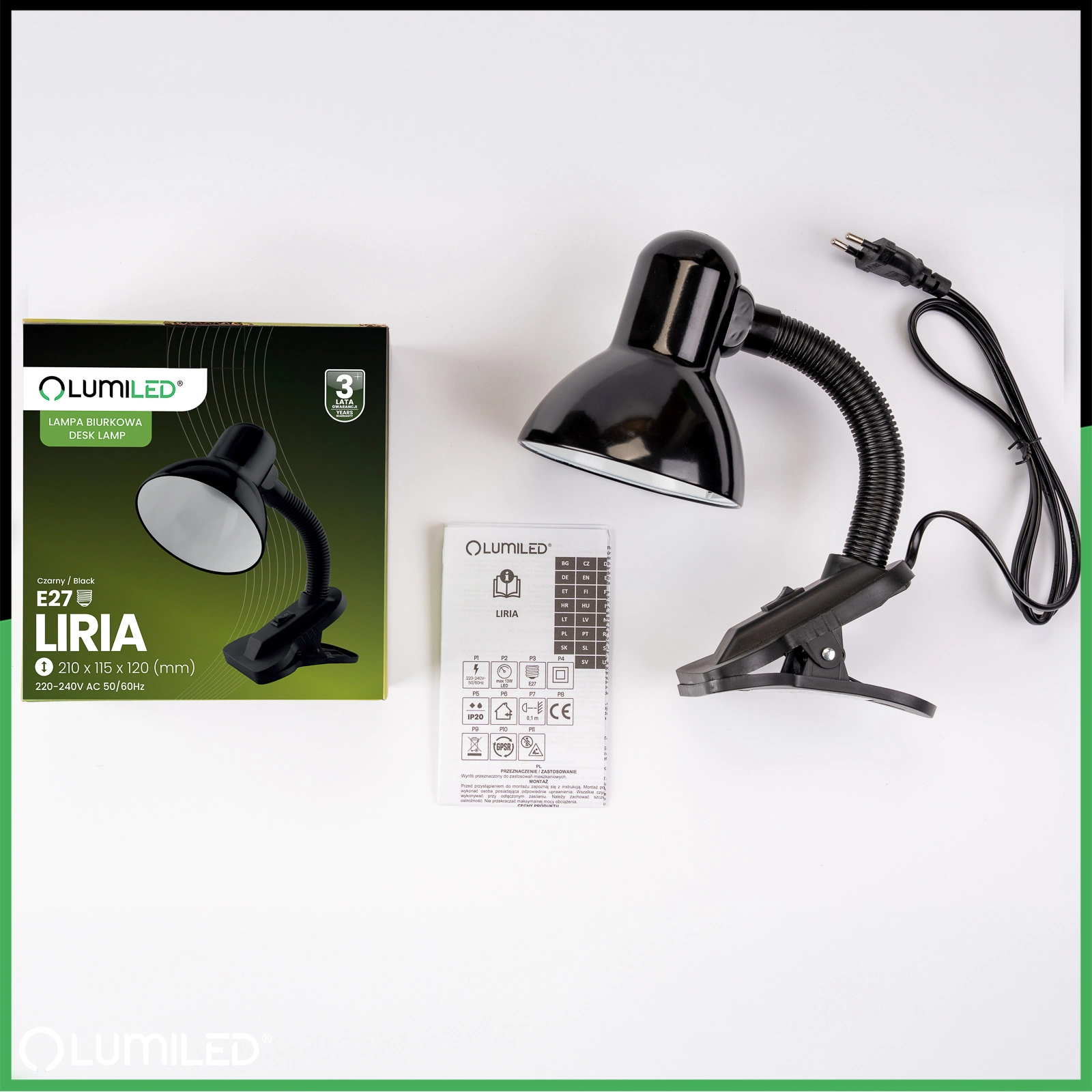 Lampka biurkowa serii LIRIA marki Lumiled to wybór, który ułatwia codzienną pracę i sprawia, że otoczenie staje się bardziej komfortowe i estetyczne. Jej uniwersalny design wpasuje się w każde wnętrze, dzięki czemu nie musisz martwić się o dopasowanie do stylu pokoju czy biura. Kompaktowe wymiary pozwalają ustawić ją nawet na małej powierzchni, oszczędzając cenne miejsce. Neutralny czarny kolor dodaje elegancji i świeżości, co pozytywnie wpływa na wygląd całego pomieszczenia. To lampka, która zapewni Ci wygodę, funkcjonalność i przyjemną atmosferę podczas pracy, nauki i odpoczynku.