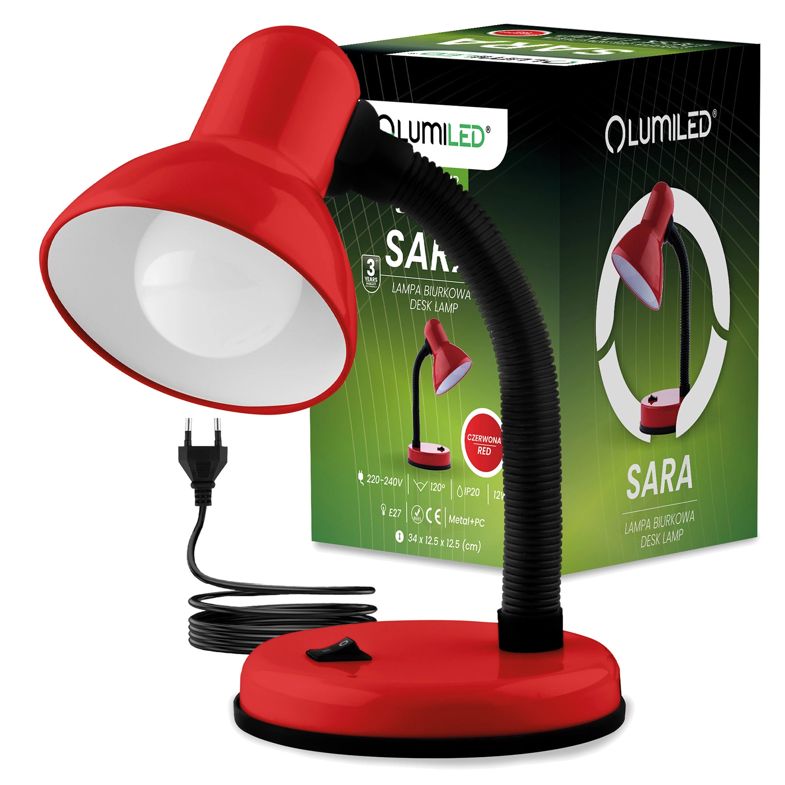 Lampka biurkowa serii SARA marki Lumiled to wybór, który ułatwia codzienną pracę i sprawia, że otoczenie staje się bardziej komfortowe i estetyczne. Jej uniwersalny design wpasuje się w każde wnętrze, dzięki czemu nie musisz martwić się o dopasowanie do stylu pokoju czy biura. Kompaktowe wymiary pozwalają ustawić ją nawet na małej powierzchni, oszczędzając cenne miejsce. Czerwony kolor dodaje wnętrzu elegancji i wyrazistego charakteru. To lampka, która zapewni Ci wygodę, funkcjonalność i przyjemną atmosferę podczas pracy, nauki i odpoczynku.