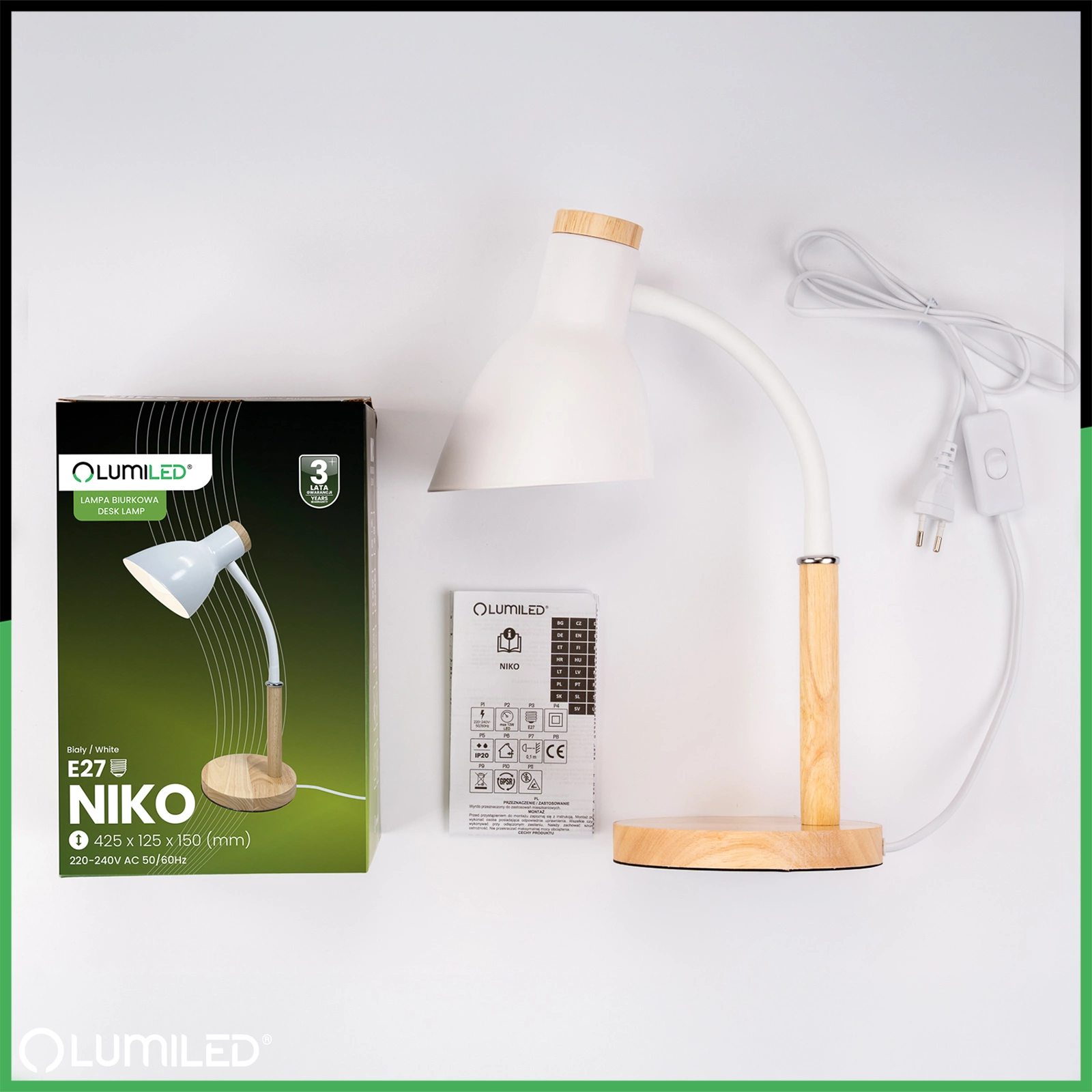 Lampka biurkowa Lumiled NIKO to praktyczny dodatek do każdego wnętrza, który ułatwia codzienną pracę i naukę. Dzięki regulowanemu ramieniu możesz skierować światło dokładnie tam, gdzie go potrzebujesz, a połączenie metalu i drewnianego akcentu sprawia, że lampka staje się stylową ozdobą pomieszczenia. Jej uniwersalny charakter sprawia, że doskonale komponuje się zarówno w nowoczesnych, jak i klasycznych aranżacjach. To połączenie funkcjonalności i estetyki, które podnosi komfort codziennego użytkowania.