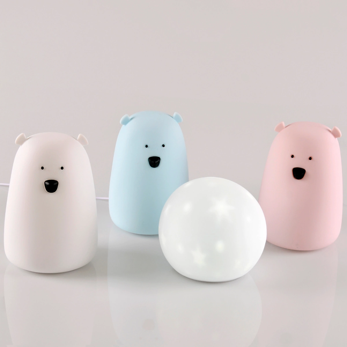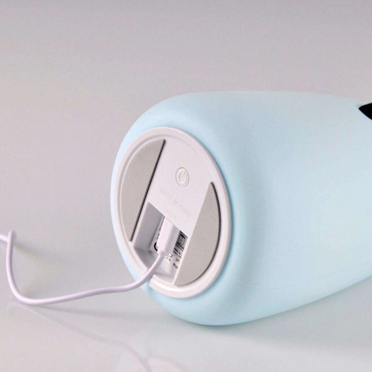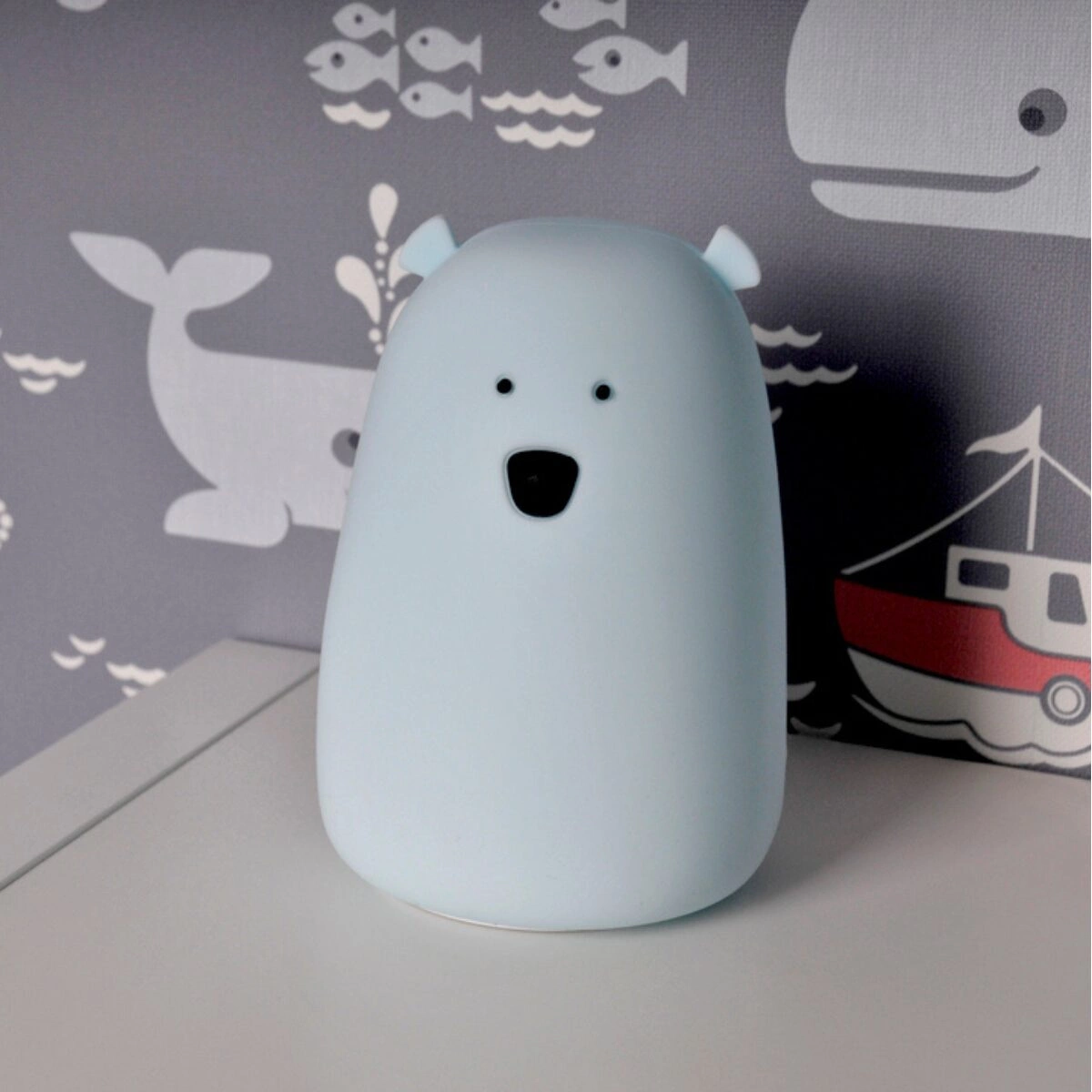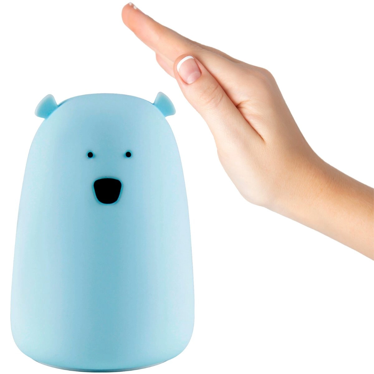 Lampa dekoracyjna marki POLUX, w kolorze niebieskim to piękny dodatek do każdego dziecięcego pokoju. Lampka nocna emituje zarówno przyjemne białe światło jak i kolorowe RGB. Lampka dziecięca o wyglądzie niebieskiego misia z pewnością wywoła uśmiech na twarzy każdego dziecka. Lampka została wyposażona w zintegrowane źródło światła LED o mocy znamionowej 0,4W emitujące strumień świetlny wynoszący 20lm. MIŚ TAP TAP to lampka dekoracyjna wyposażona w akumulator o pojemności 1200mAh dzięki czemu działa ona bez użycia kabla. Orientacyjny czas użytkowania lampki na pełnej baterii to 15h przy świetle białym 3000K i 12h przy świetle kolorowym RGB. Czas ładowania baterii wynosi 3h. Do lampki dołączony jest kabel USB za pomocą którego możemy naładować nasze urządzenie podpinając go np. do laptopa lub komputera