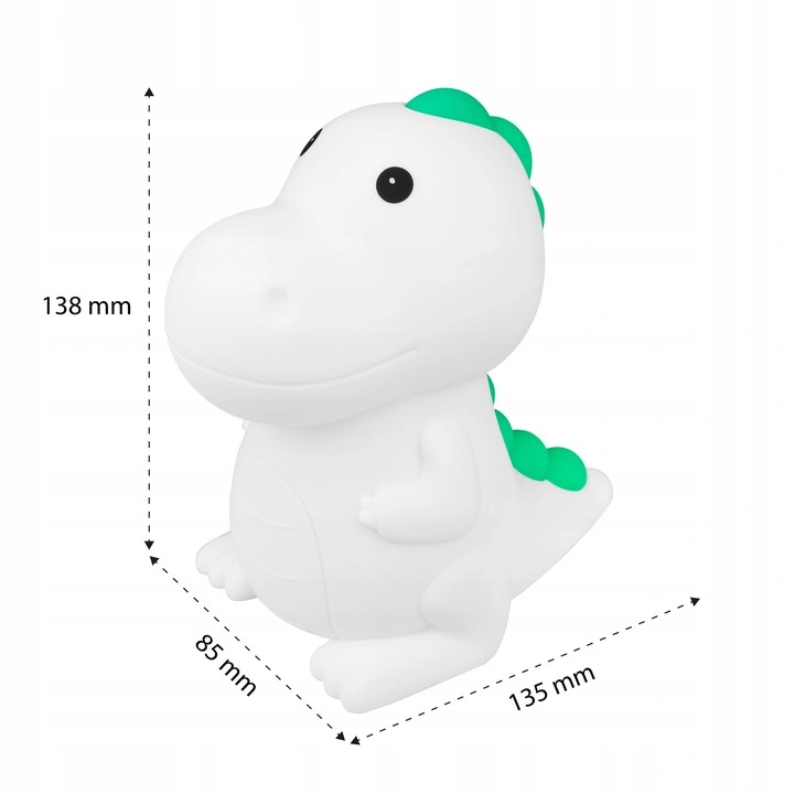 Przywitaj magiczną atmosferę w pokoju Twojego dziecka dzięki dekoracyjnej lampce nocnej w kształcie uroczej dinozaura. Ta wyjątkowa lampka LED o intensywności 2.5W i świetlności 25lm oferuje niezrównaną barwę światła, zmieniającą się od kojącej białej ciepłej do pełnego spektrum kolorów RGB, zapewniając pełne 360° rozświetlenie. Idealny dodatek do sypialni, salonu, kuchni czy biura, lampka ta wprowadza miękkie, przytulne oświetlenie, które nie tylko uspokaja, ale i pobudza wyobraźnię maluchów.