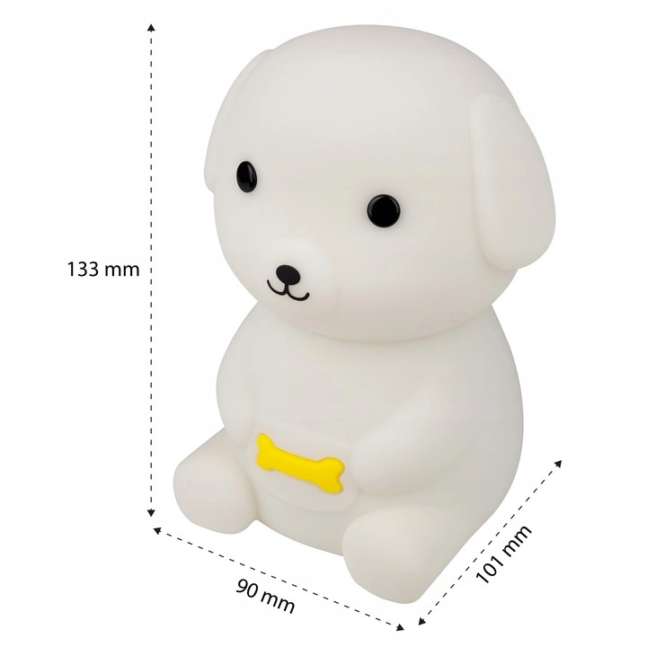Lampka doskonale sprawdza się zarówno jako zabawka, jak i nastrojowa lampka nocna, tworząc przyjazną atmosferę w pokoju. Emituje ciepłe, białe światło, które sprzyja wyciszeniu i zapewnia komfort podczas wieczornego odpoczynku.