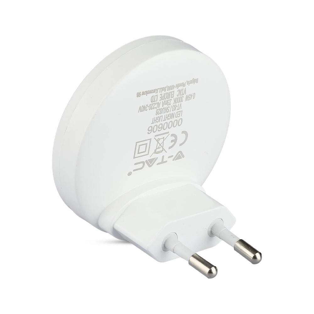 Lampka do gniazdka orientacyjna Lampka nocna LED 0.45W 3000K Z czujnikiem zmierzchu Okrągła Biała Samsung Chip VT-83 V-TAC