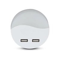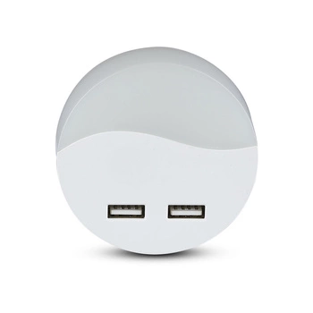 Chwilowo niedostępnyLampka orientacyjna Lampka nocna LED 0.45W 3000K Z czujnikiem zmierzchu i portem USB Okrągła Biała Samsung Chip VT-84 V-TAC
