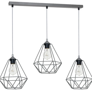 Chwilowo niedostępnyLampa wisząca BASKET 3xE27 Geometryczny Kształt Loft Szara Koszyk Diament MLP7217 Metal