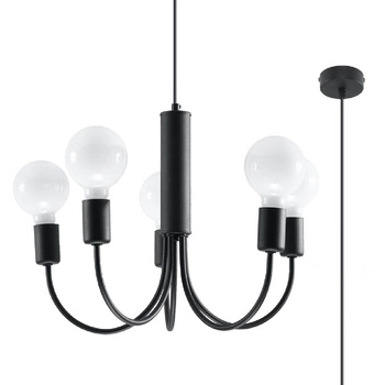 Lampa Sufitowa Wisząca Zwis 5x E27 Żyrandol Geometryczna Czarna Minimalistyczna Skala Sollux