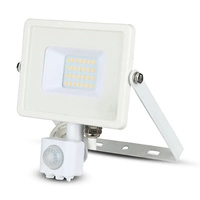 Chwilowo niedostępnyNaświetlacz LED 20W 1600lm 3000K IP65 Biały z czujnikiem ruchu i funkcją CUT-OFF Samsung Chip VT-20-S-W V-TAC