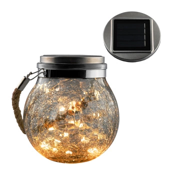 Lampa ogrodowa LED solarna wisząca KULKA LED szklana srebrna efekt pękniętego szkła