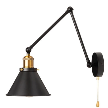 Lampa Ścienna Czarna E27 Kinkiet Metalowy Klosz Ruchoma z Łańcuszkiem Loftowa