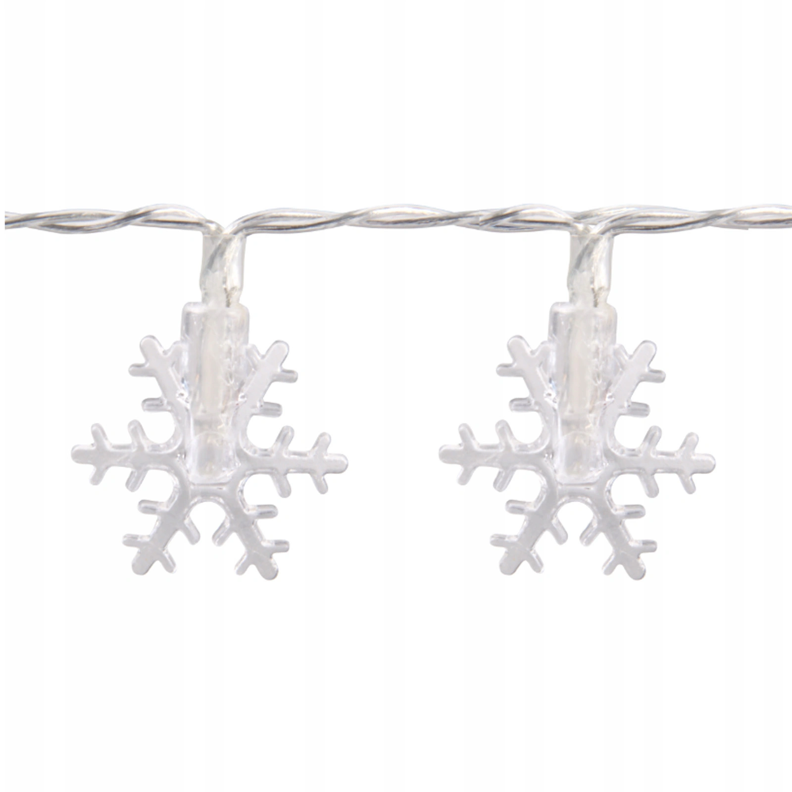 Światełka świąteczne w kształcie śnieżynek to doskonała ozdoba drzewka bożonarodzeniowego, kominka czy witryny okna. Piękna ozdoba, która tworzy wyjątkowy, świąteczny nastój. Światełka LED emitują zimną ciepłą barwę 6500K i zasilane są za pomocą baterii 3xAA (brak w zestawie). Czas świecenia na 1 komplecie baterii będzie wynosić około 20-30h.