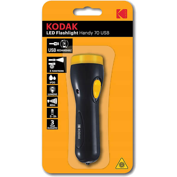 Latarka LED Ładowalna USB Ręczna FLASHLIGHT HANDY 70lm z Funkcją UV KODAK