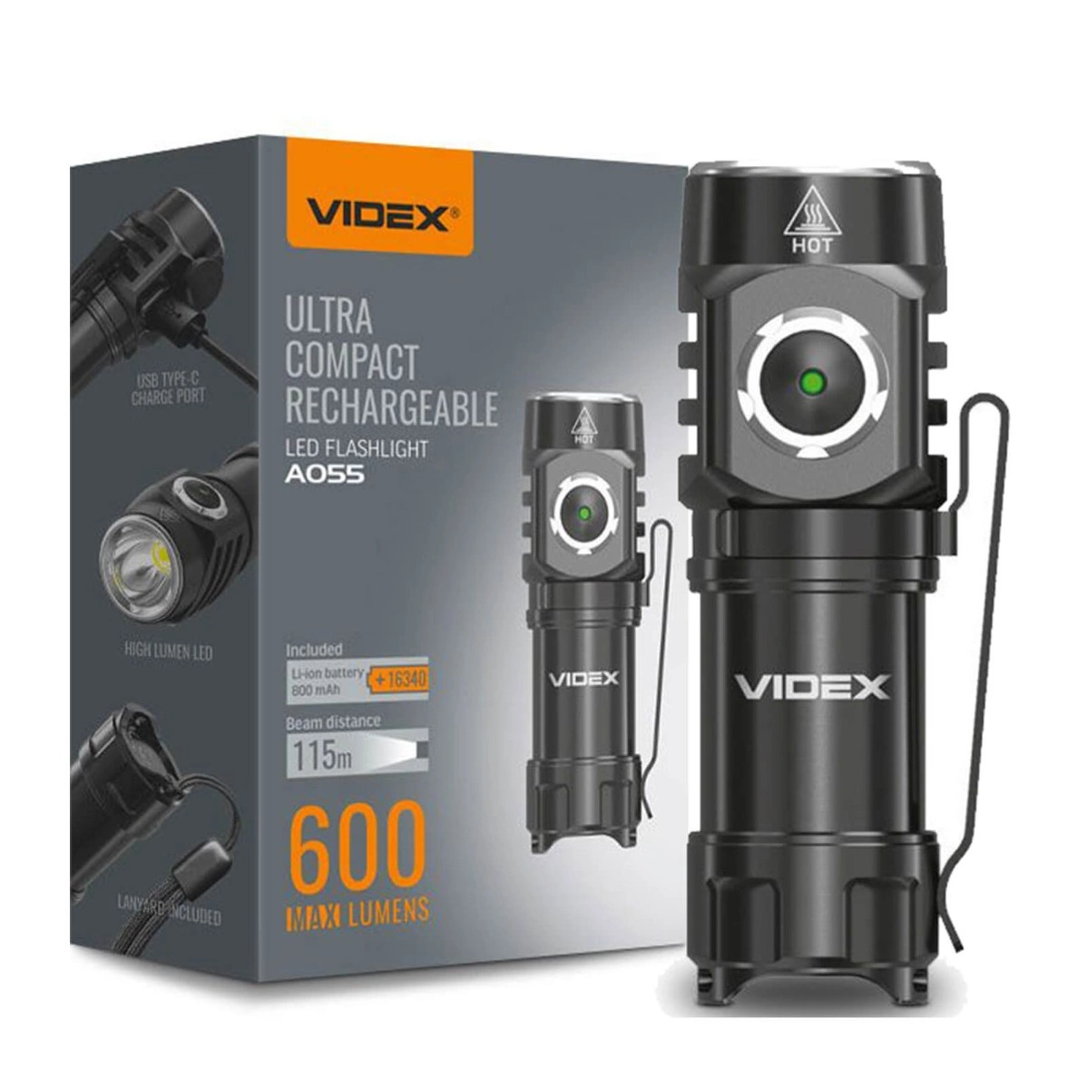 Latarka Videx to także solidność i trwałość dzięki wykonaniu z wysokiej jakości aluminium i hartowanemu szkłu osłony. Wyposażona w litowo-jonową baterię o pojemności 800 mAh, oferuje czas działania do 2.45 godzin i ładuje się w zaledwie 2.5 godziny.