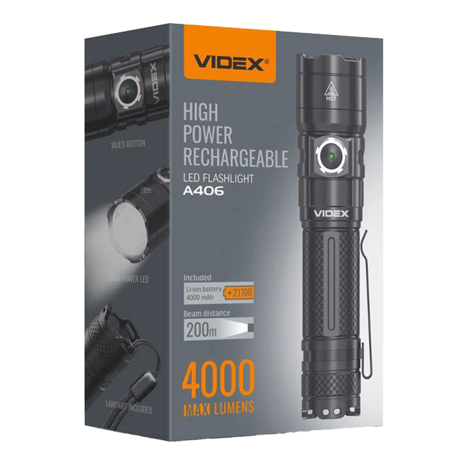 Odkryj moc i wszechstronność z latarką ręczną akumulatorową LED Videx, która dostarcza aż 4000 lumenów czystego światła. Ta latarka to doskonałe, niezawodne narzędzie dla pasjonatów outdooru i profesjonalistów. Dzięki 6 trybom pracy, dostosujesz jej działanie do każdej sytuacji — od mocnego strumienia po subtelne oświetlenie. Wysoka skuteczność świetlna 200 lm/W zapewnia optymalne wykorzystanie energii, a port USB-C umożliwia szybkie ładowanie, byś mógł skupić się na przygodzie, a nie na przerwach.