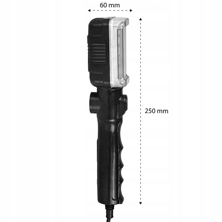 Przenośna warsztatowa lampa LED specjalnie zaprojektowana do użytku w miejscach wymagających intensywnego światła. Wyposażona jest w obudowę z magnesem i obrotowym haczykiem do zawieszenia, co ułatwia montaż. Produkt posiada również długi, 5-metrowy przewód, eliminując problem zbyt oddalonych gniazdek.