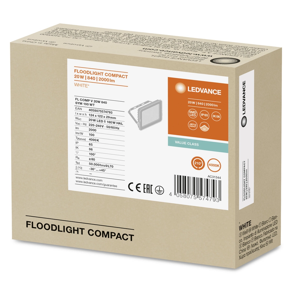 Naświetlacz LED 20W 2000lm 4000K IP65 Biały LEDVANCE COMPACT V