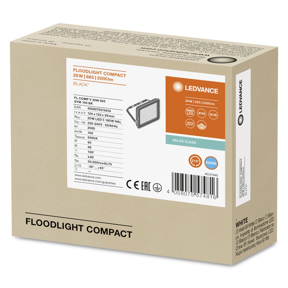 Naświetlacz LED 20W 2000lm 6500K IP65 Czarny LEDVANCE COMPACT V