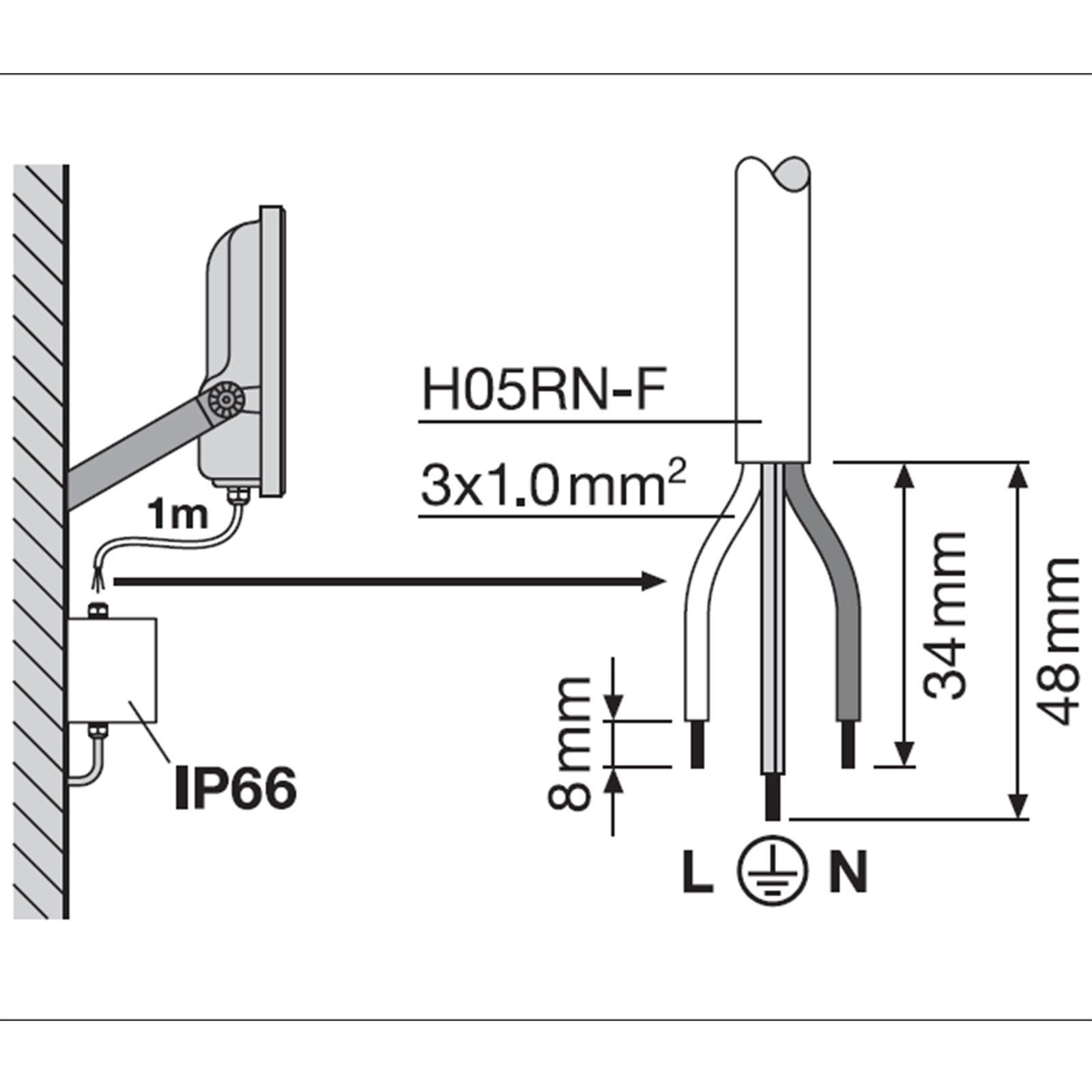- Odporność na warunki atmosferyczne: Klasa ochrony IP66 zapewnia pełną ochronę przed pyłem i wodą, czyniąc naświetlacz odpornym na najbardziej wymagające warunki zewnętrzne.