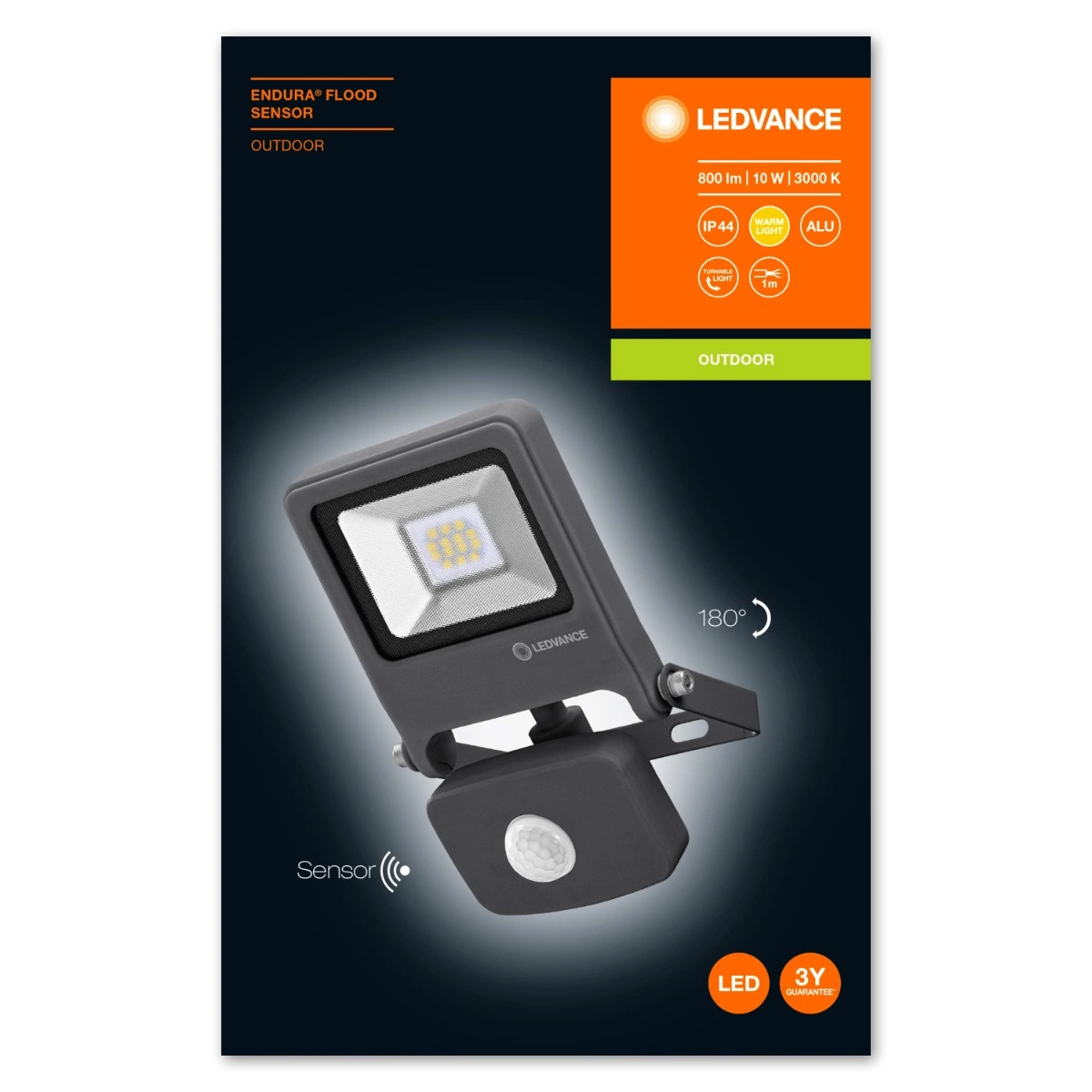 Naświetlacz LED Reflektor Zewnętrzny Lampa 10W 800lm 3000K IP44 Szary Z Czujnikiem Ruchu i Zmierzchu Endura Ledvance