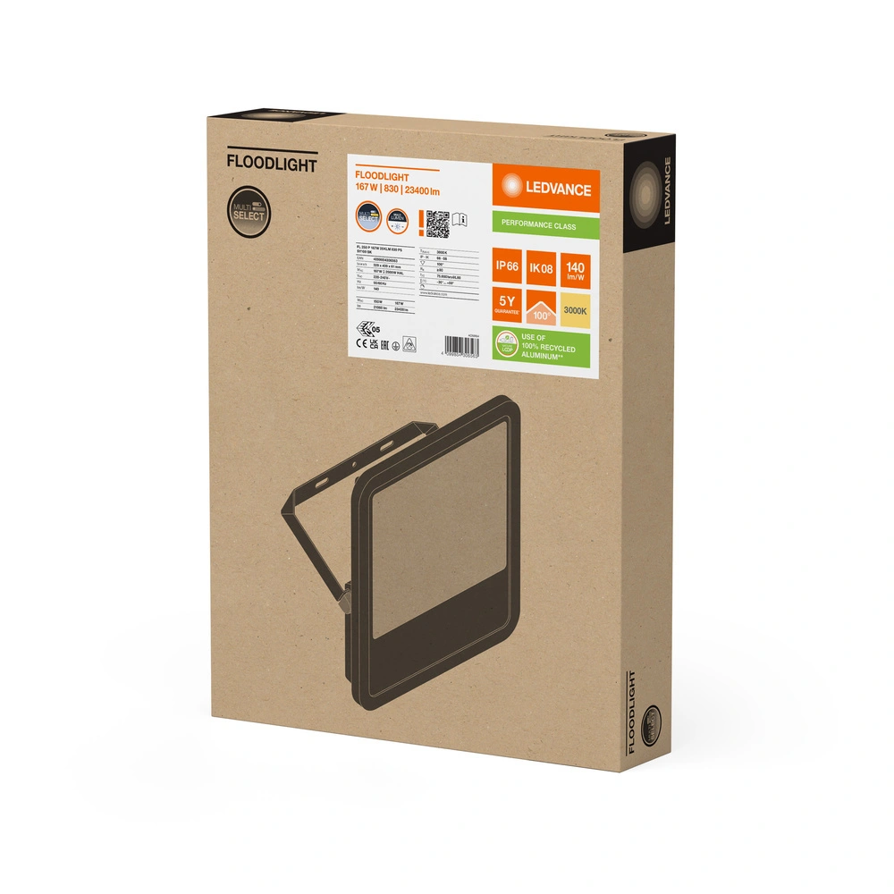 Odkryj wyjątkową jakość oświetlenia zewnętrznego dzięki Naświetlaczowi LED Reflektorowi Zewnętrznemu 167W od renomowanej marki Ledvance. Ta lampa LED oferuje niespotykaną jasność, emitując aż 23400 lumenów, co zapewnia doskonałe oświetlenie dużych przestrzeni, takich jak ogrody, parkingi, czy tereny przemysłowe. Dzięki barwie światła 3000K, reflektor generuje ciepłe, przyjemne oświetlenie, które wspaniale sprawdzi się zarówno w zastosowaniach prywatnych, jak i komercyjnych. Solidna konstrukcja z wysoką klasą szczelności IP66 sprawia, że urządzenie jest odporne na pył oraz wodę, co gwarantuje niezawodność działania nawet w trudnych warunkach atmosferycznych.