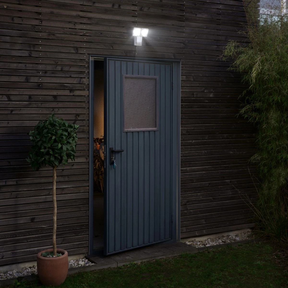 - Bezpieczne oświetlenie wejścia – czujnik ruchu uruchomi światło, gdy wykryje ruch, zapewniając wygodę i ochronę w okolicach drzwi wejściowych.