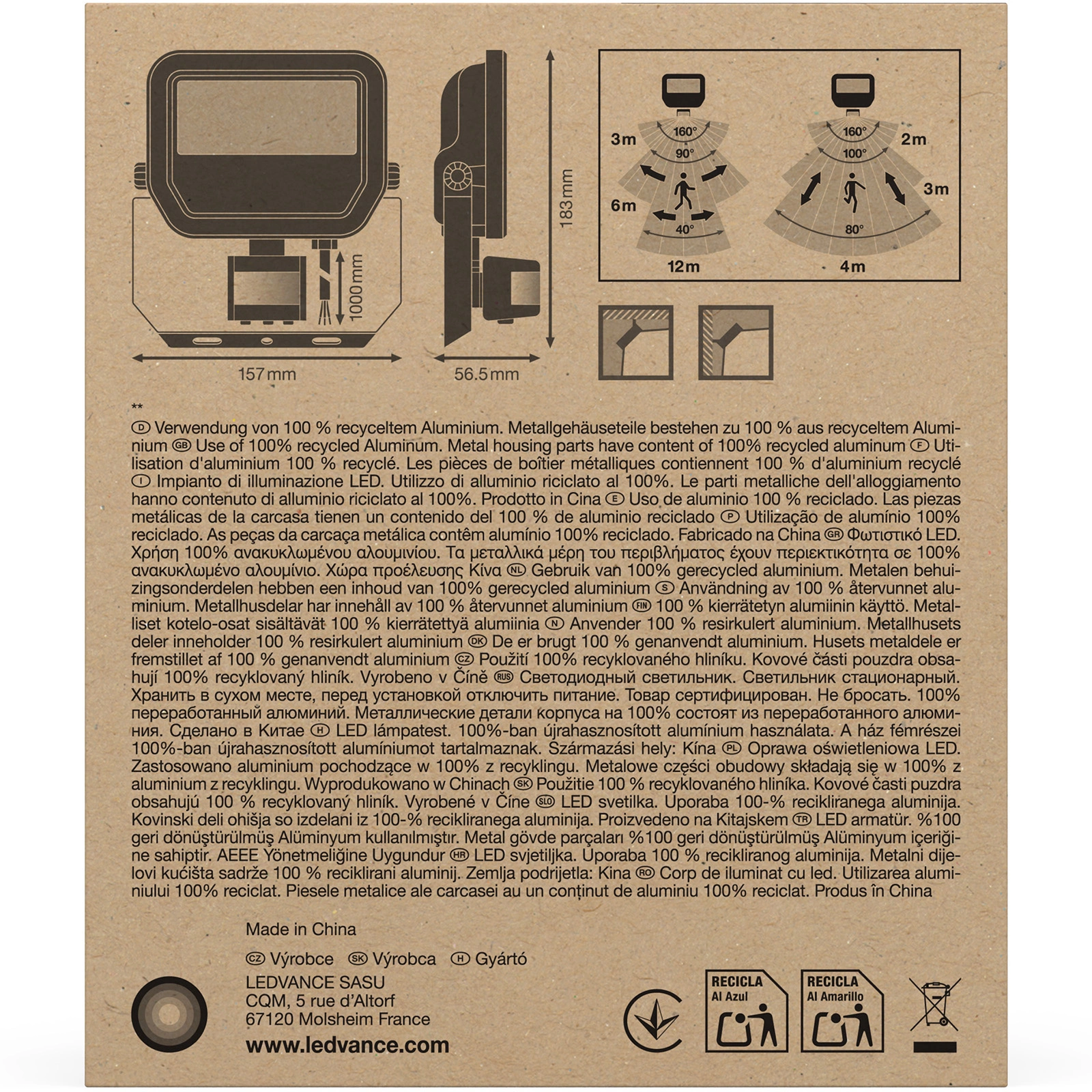 Solidna konstrukcja z aluminium i szkła zapewnia trwałość i odporność na trudne warunki atmosferyczne, co potwierdza stopień ochrony IP65. Ten reflektor jest przeznaczony do pracy w ekstremalnych temperaturach, od -30°C do +50°C, co czyni go niezawodnym wyborem na każdą porę roku. Z jego długą żywotnością wynoszącą do 100000 godzin, masz pewność, że ten reflektor LED zapewni długotrwałe i efektywne oświetlenie twojej posesji na wiele lat. Postaw na energooszczędność i nowoczesny design – wybierz naświetlacz LED Reflektor Zewnętrzny od Ledvance.